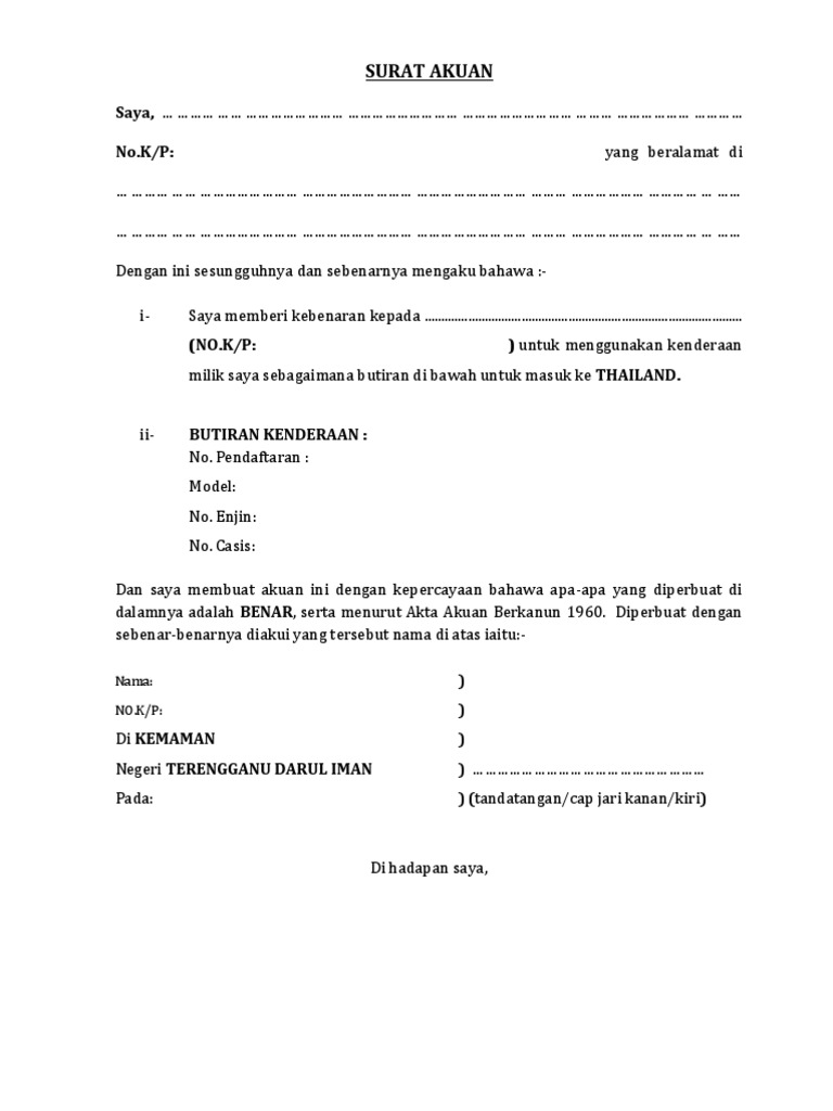 Akuan Sumpah Kebenaran Bawa Kenderaan Masuk Thailand