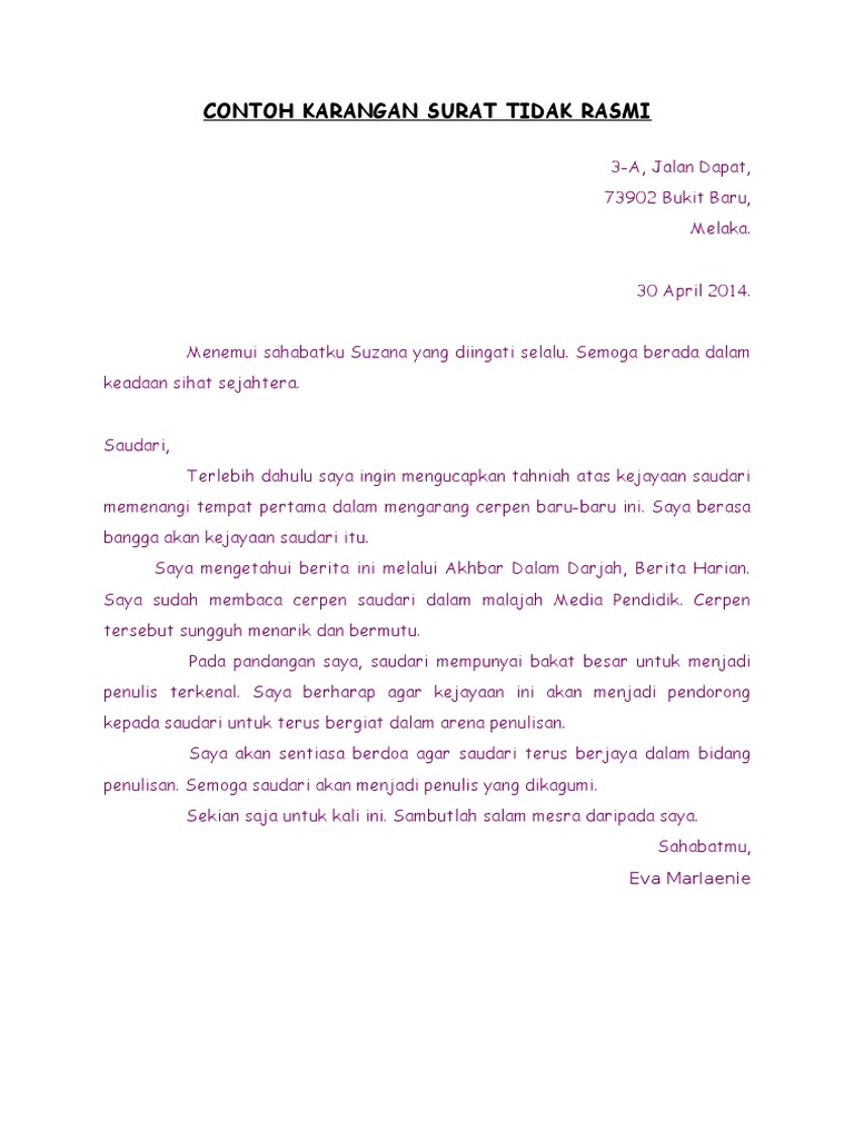 Contoh Surat Kiriman Tidak Rasmi Mudah Dan Ringkas Blog Test Template