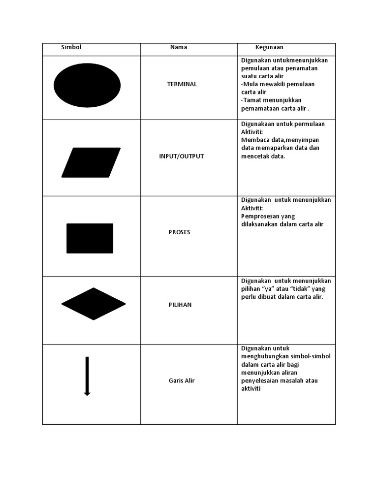 Simbol Simbol Diagram Alir Flow Chart