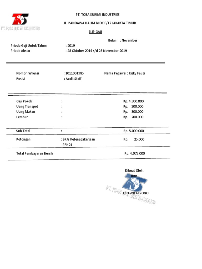Contoh Contoh Slip Gaji Di Perusahaan Blog Gadjian