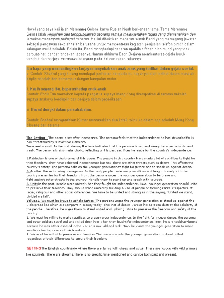 Novel Yang Saya Kaji Ialah Merenang Gelora Docx