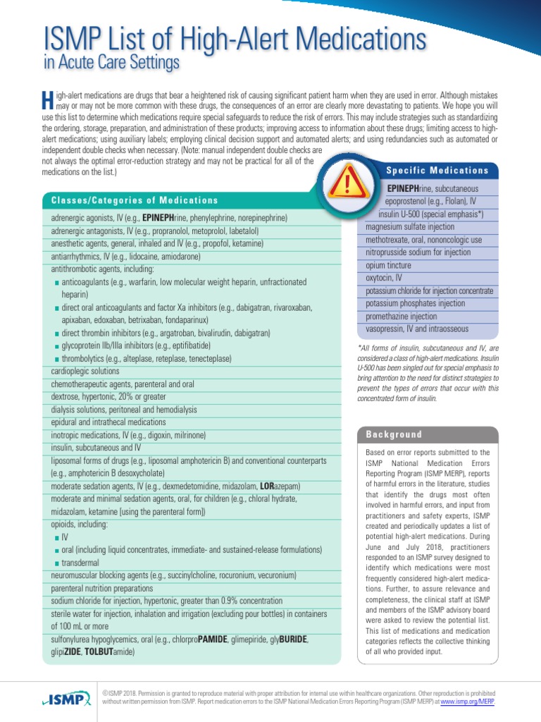 Your High Alert Medication List Relatively Useless Without Associated Risk Reduction Strategies Institute For Safe Medication Practices