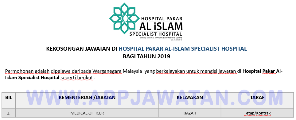 Permohonan Jawatan Kosong Hospital Pakar Al Islam Portal Kerja Kosong Graduan