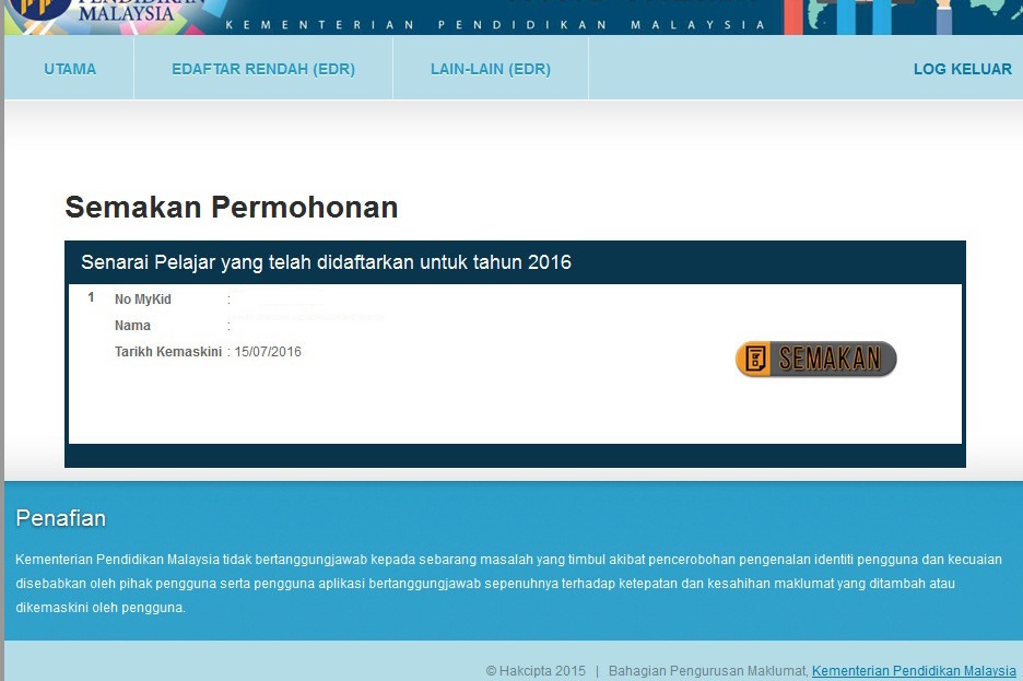 Semakan Keputusan Tahun 1 2021 2022 Online Permohonan My