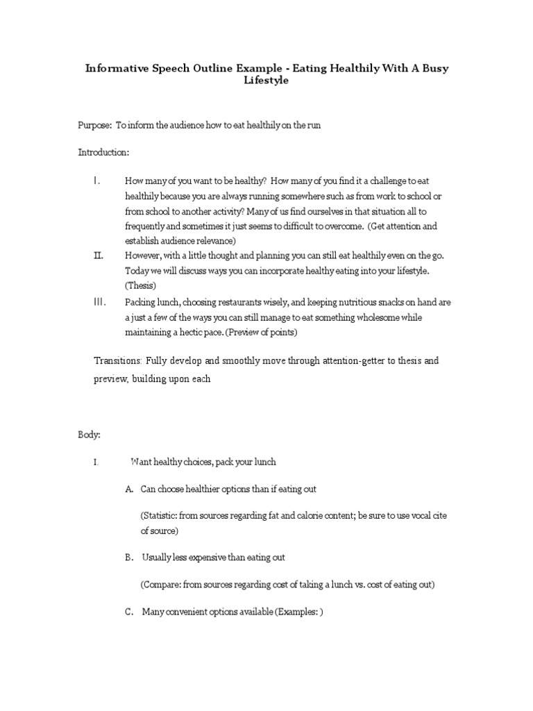 Eating Healthily With A Busy Lifestyle Informative Speech Outline
