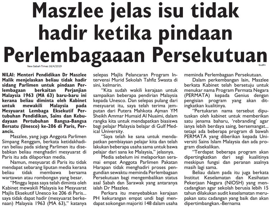 Blog Koleksi Akhbar Pendidikan New Sabah Times Maszlee Jelas Isu Tidak Hadir Ketika Pindaan Perlembagaan Persekutuan