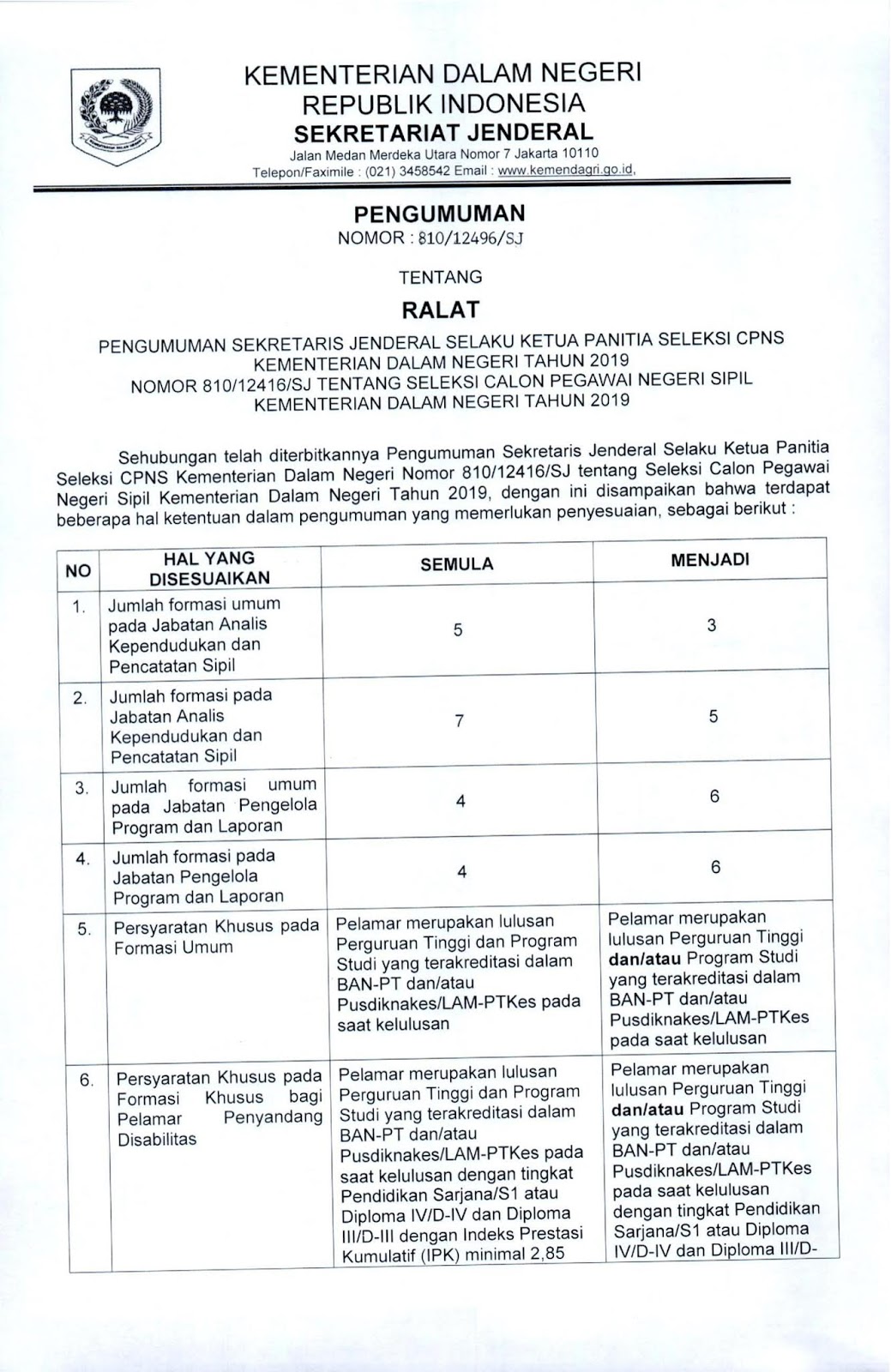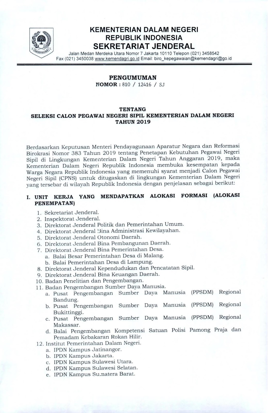 Lowongan Cpns Kementerian Dalam Negeri Tahun Anggaran 2019 370 Formasi Rekrutmen Lowongan Kerja Bulan Oktober 2020