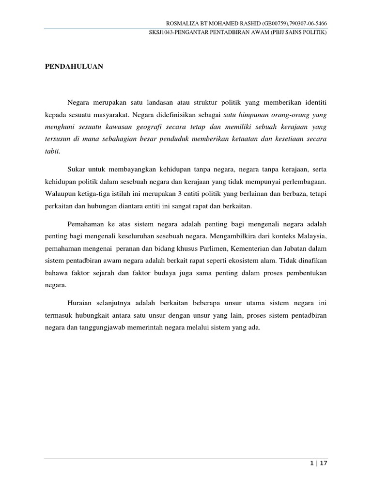 22755533 Peranan Dan Bidang Khusus Parlimen Kementerian Dan Jabatan Dalam Sistem Pentadbiran Awam Negara Oleh Rosmaliza