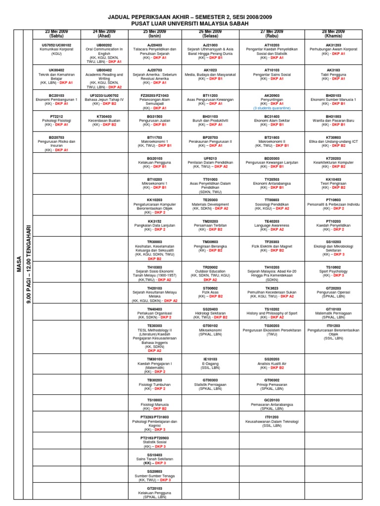 Jadual Peperiksaan Akhir Umskal Semester Sektor Perkhidmatan Akademik Ums Kampus Antarabangsa Labuan Facebook