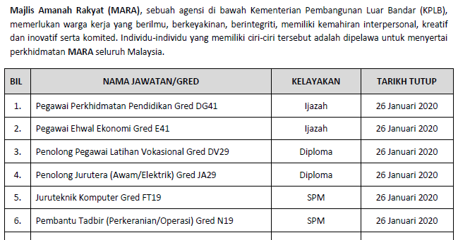 Jawatan Kosong Di Majlis Amanah Rakyat Mara Tarikh Tutup 26 Januari 2020 Jawatan Kosong Kerajaan 2020 Terkini