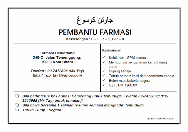 Jawatan Kosong Pembantu Farmasi Kerja Kosong Di Kelantan Facebook