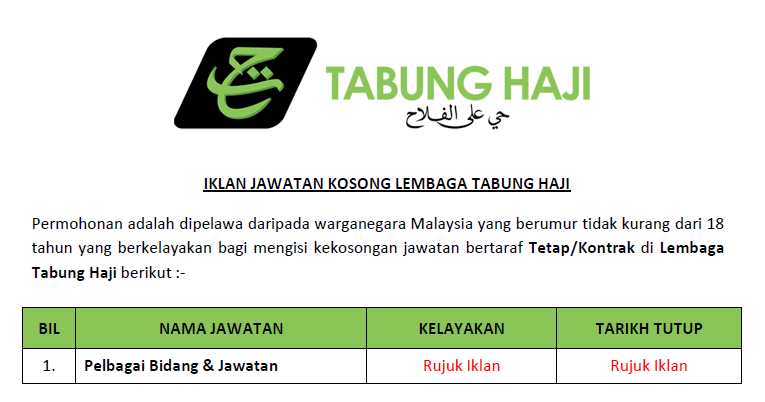 Jawatan Kosong Di Lembaga Tabung Haji Tawaran Gaji Sehingga Rm4 900 Pelbagai Kekosongan Ditawarkan My Kerja