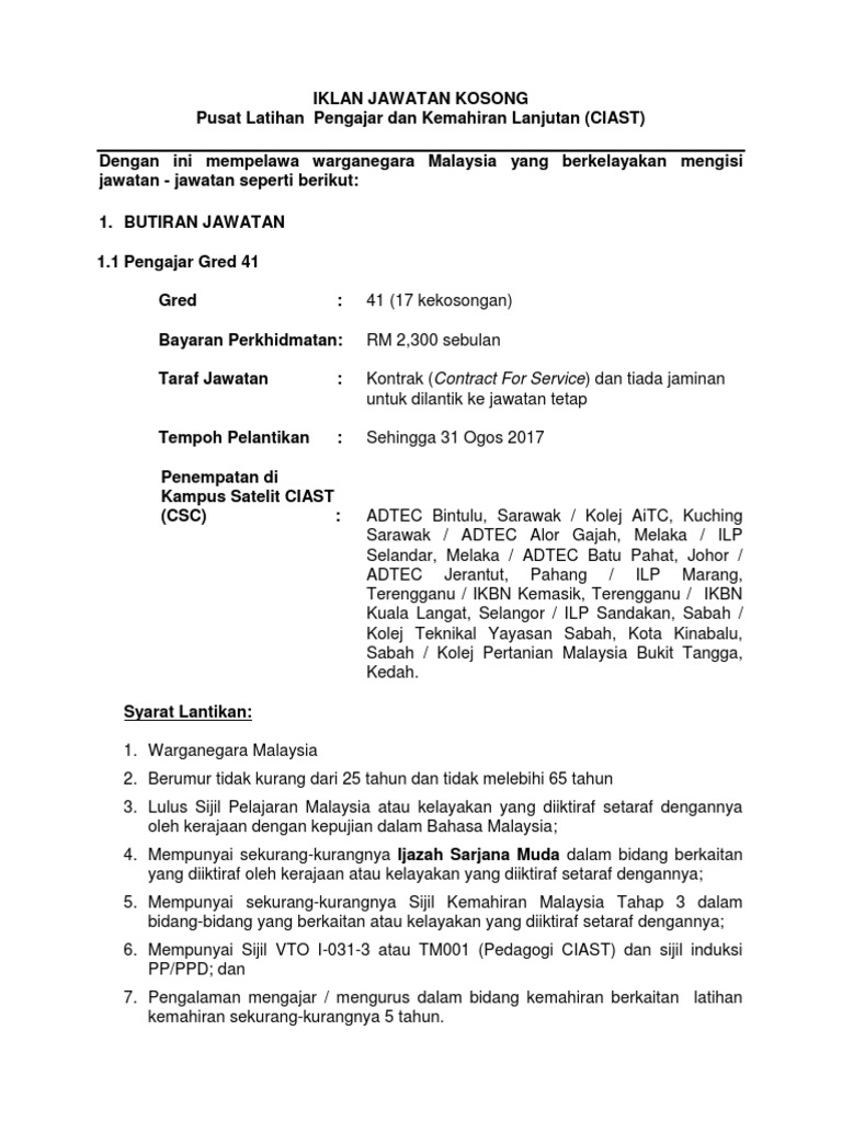 Jawatan Kosong Sebagai Tenaga Pengajar Di Ciast Pelbagai Negeri Gaji Rm1 600 00 Rm9 643 00 Jobcari Com Jawatan Kosong Terkini