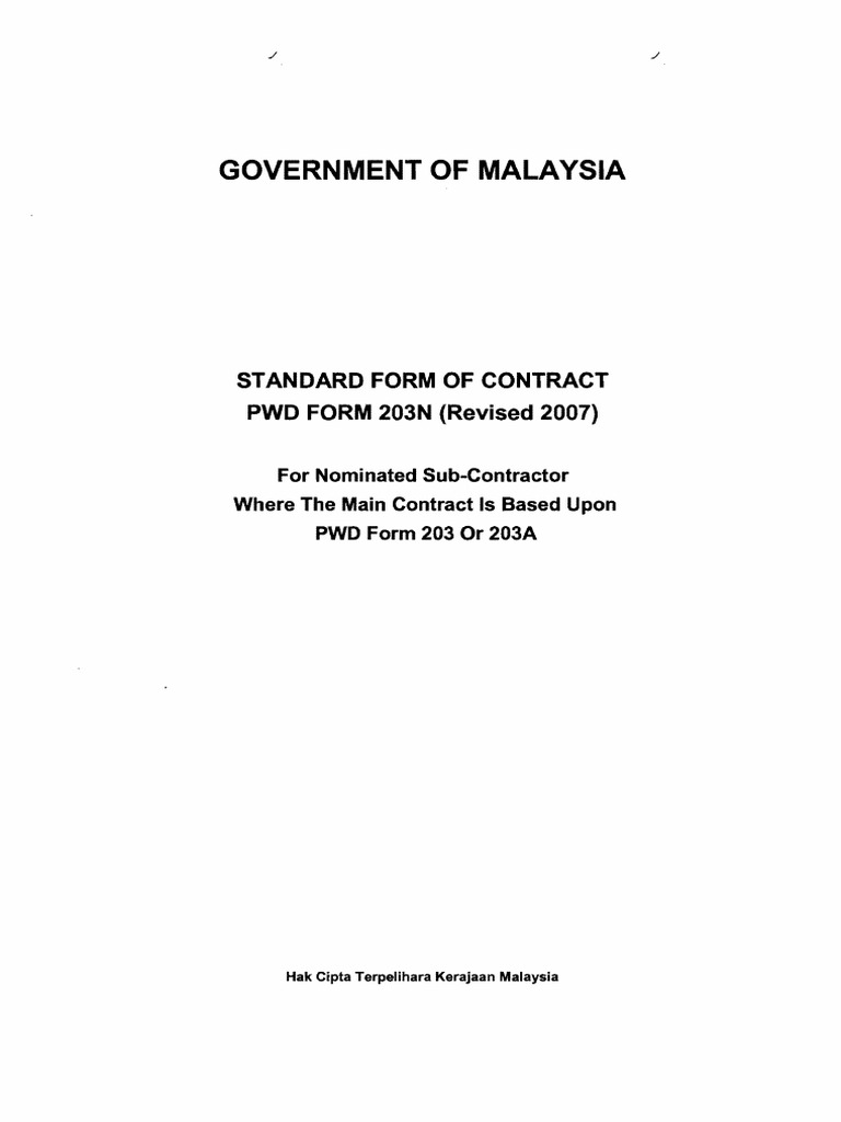 Standard form of building contract to be used where bills of quantities form part of the contract. Standard form of sub contract for nominated sub contractor where the main contract is based on form pwd 203 or 203a. Kementerian kerja raya tingkat 1 14 kompleks kerja raya jalan sultan salahuddin 50580 kuala lumpur.