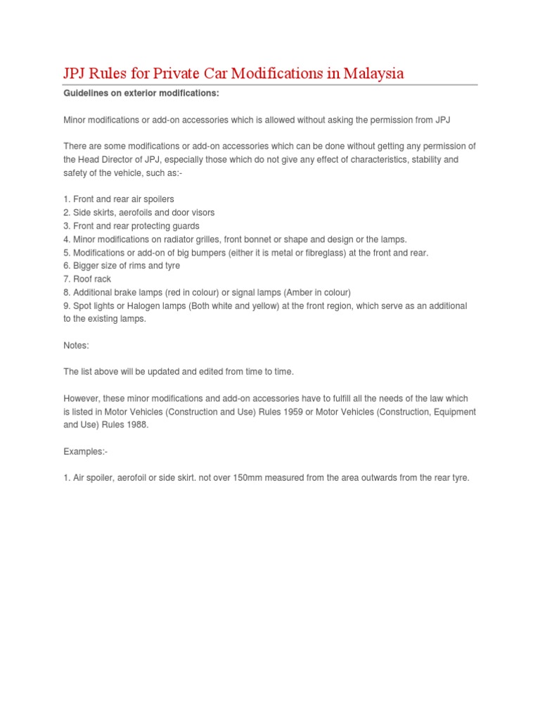 Jpj Rules For Private Car Modifications Body Kit In Malaysia Car Rc