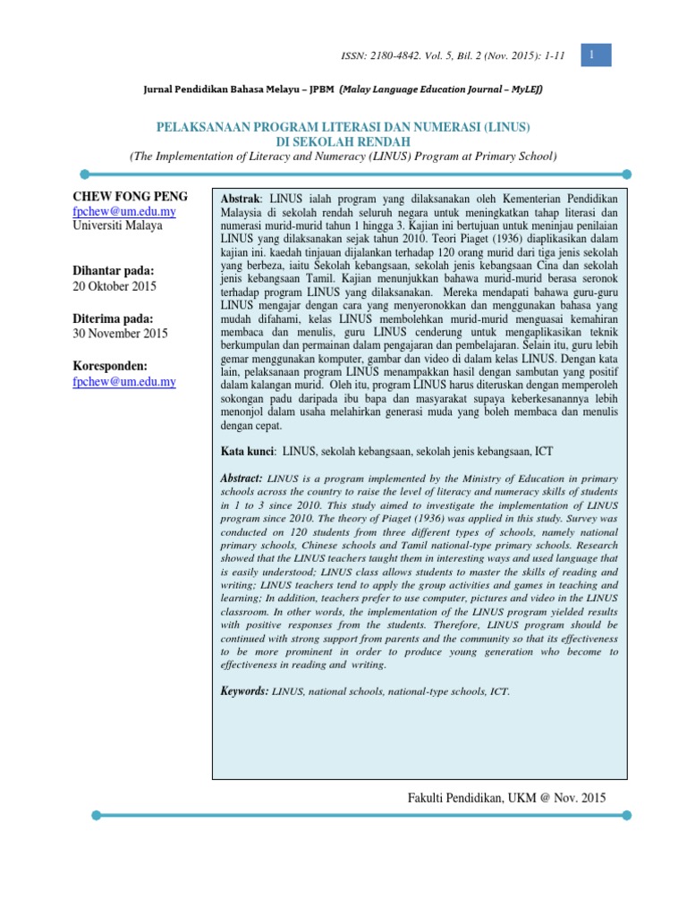 Pdf Jurnal Permasalahan Kemahiran Membaca Dan Menulis Bahasa Melayu Murid Murid Sekolah Rendah Di Luar Bandar The Problems Pertaining To Reading And Writing Skills In Malay Language Among Rural Primary School Children
