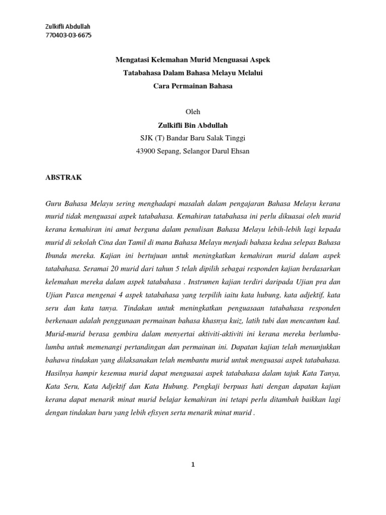 Doc Kajian Tindakan Bahasa Melayu Tahun 3 Thamarai Valli Academia Edu