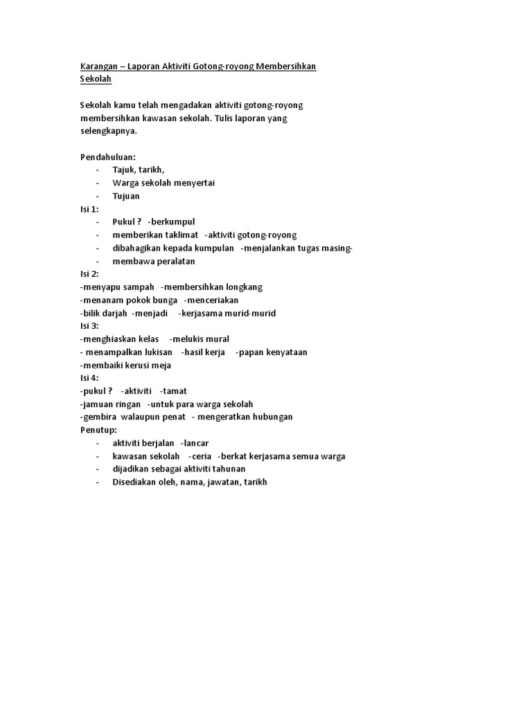 Contoh Karangan Laporan Aktiviti Gotong Royong